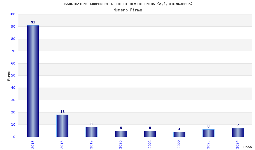 | Anno | Firme | Importi | Media | Naz. | Reg. | Prov. | Comu. |