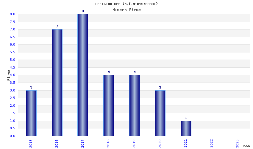 | Anno | Firme | Importi | Media | Naz. | Reg. | Prov. | Comu. |