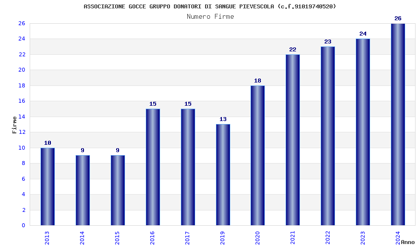 | Anno | Firme | Importi | Media | Naz. | Reg. | Prov. | Comu. |