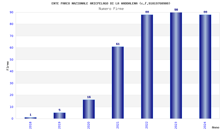| Anno | Firme | Importi | Media | Naz. | Reg. | Prov. | Comu. |