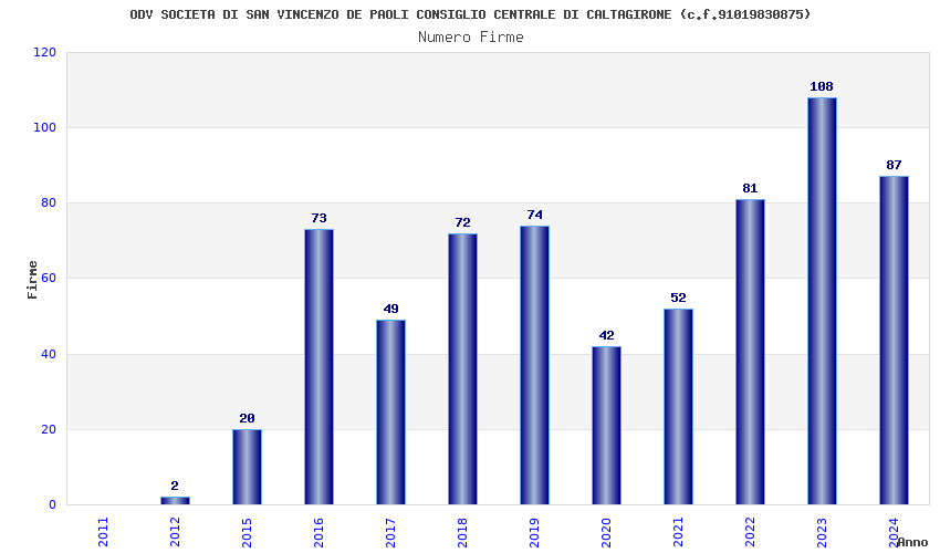 | Anno | Firme | Importi | Media | Naz. | Reg. | Prov. | Comu. |