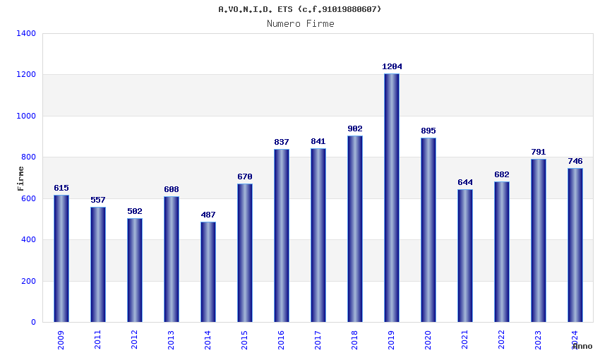 | Anno | Firme | Importi | Media | Naz. | Reg. | Prov. | Comu. |