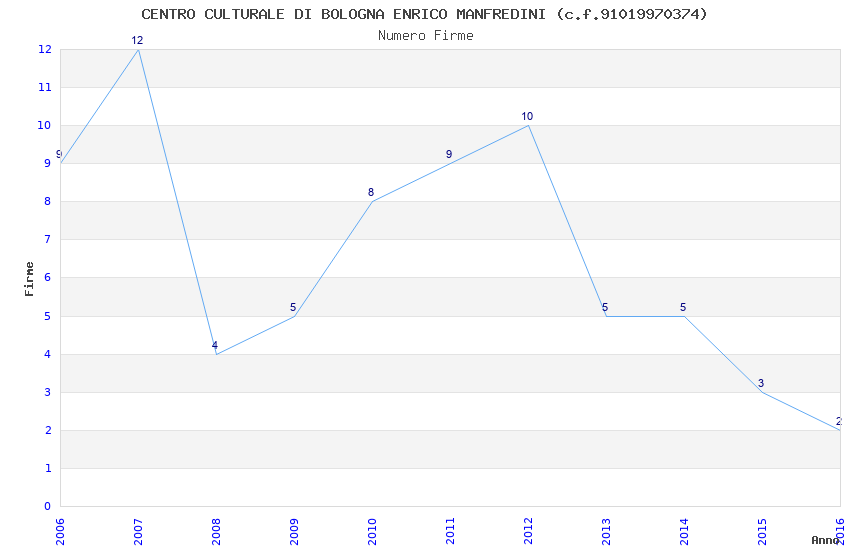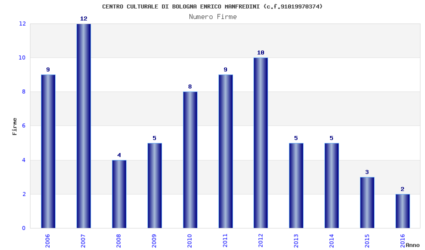 | Anno | Firme | Importi | Media | Naz. | Reg. | Prov. | Comu. |