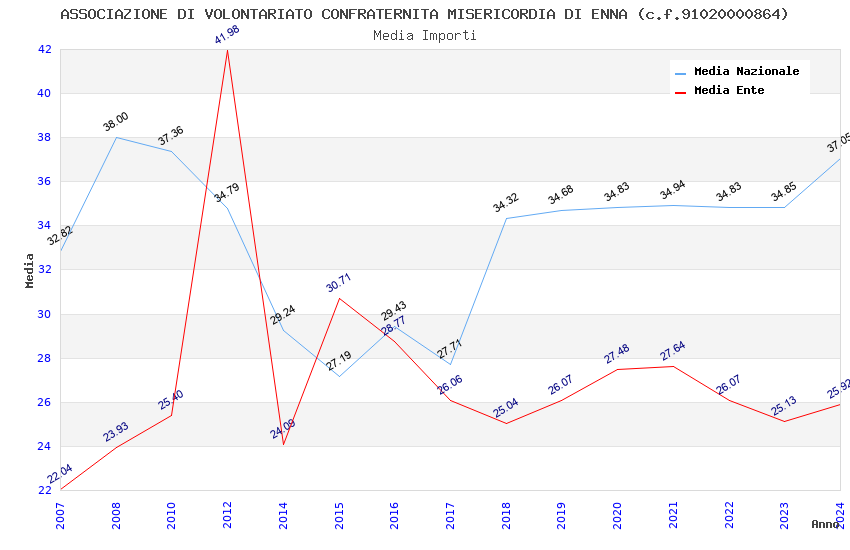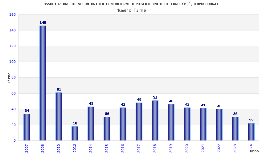 | Anno | Firme | Importi | Media | Naz. | Reg. | Prov. | Comu. |