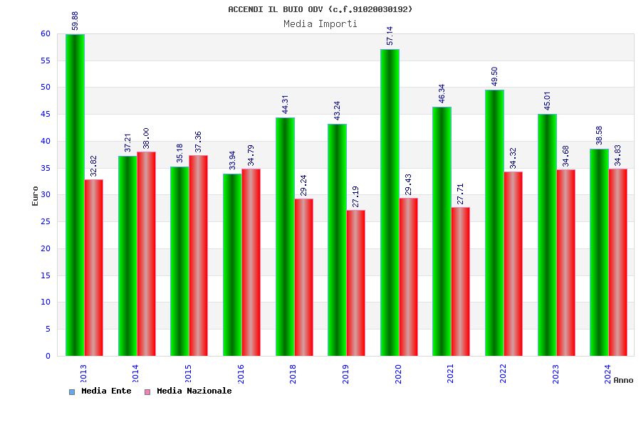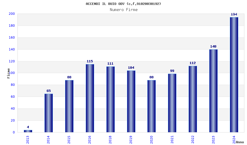 | Anno | Firme | Importi | Media | Naz. | Reg. | Prov. | Comu. |