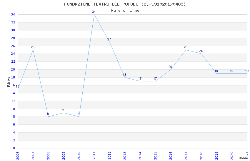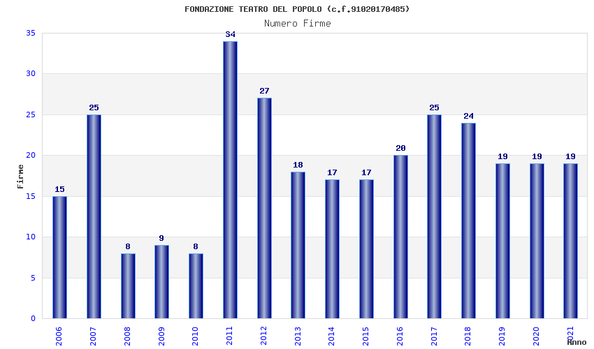 | Anno | Firme | Importi | Media | Naz. | Reg. | Prov. | Comu. |