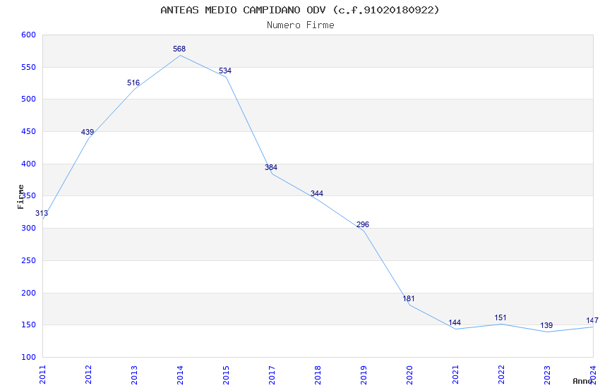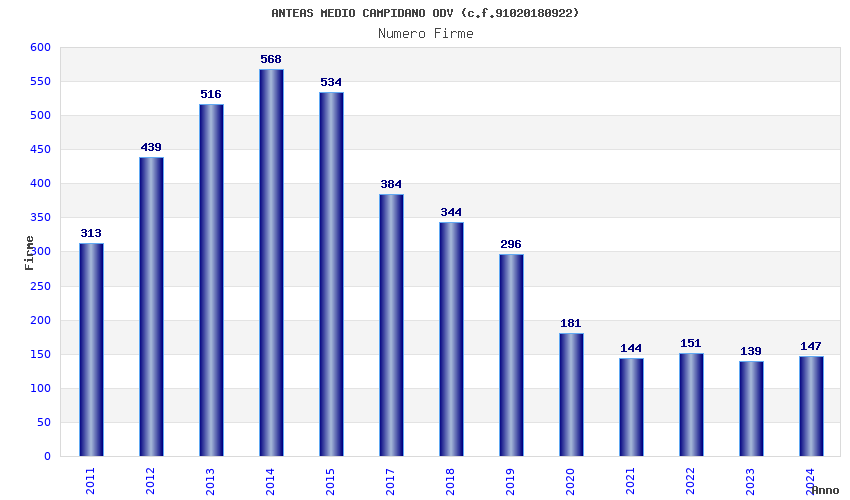 Anno Firme Importi Media Naz. Reg. Prov. Comu.