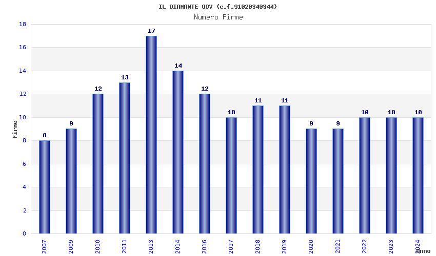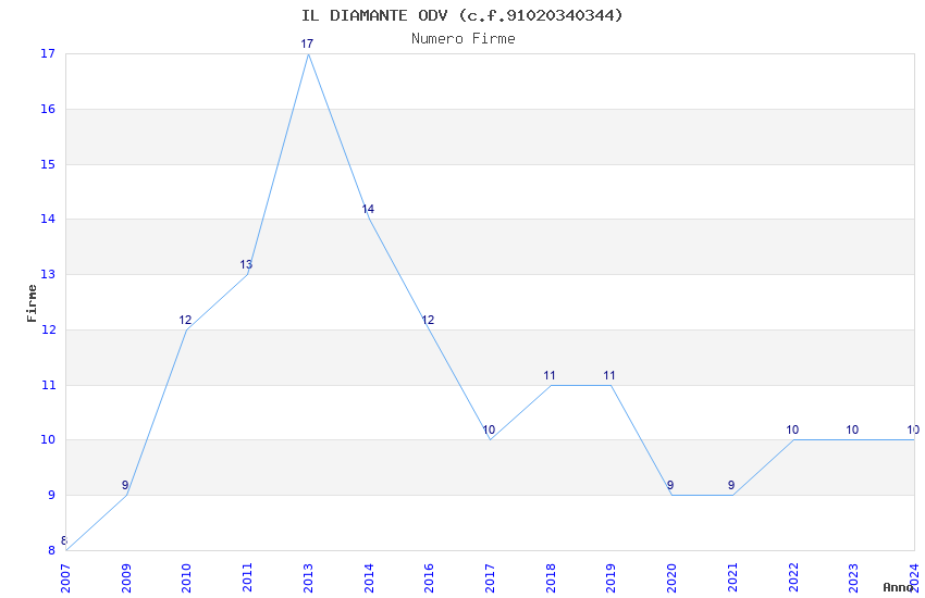 | 2013 | 17 | 386,07 | 22,71 | 37.179 | 3.382 | 430 | 24 |