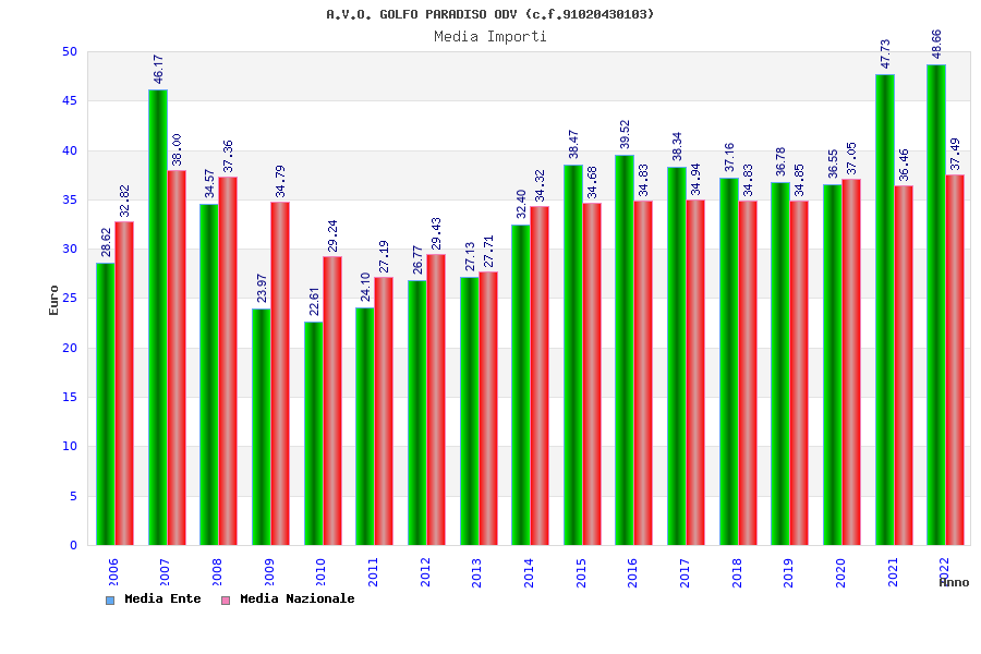 | Anno | Firme | Importi | Media | Naz. | Reg. | Prov. | Comu. |