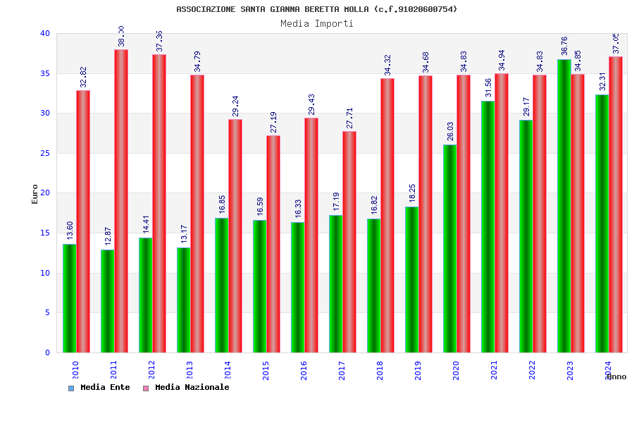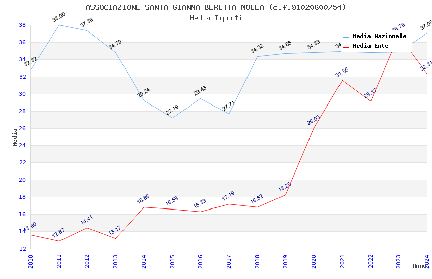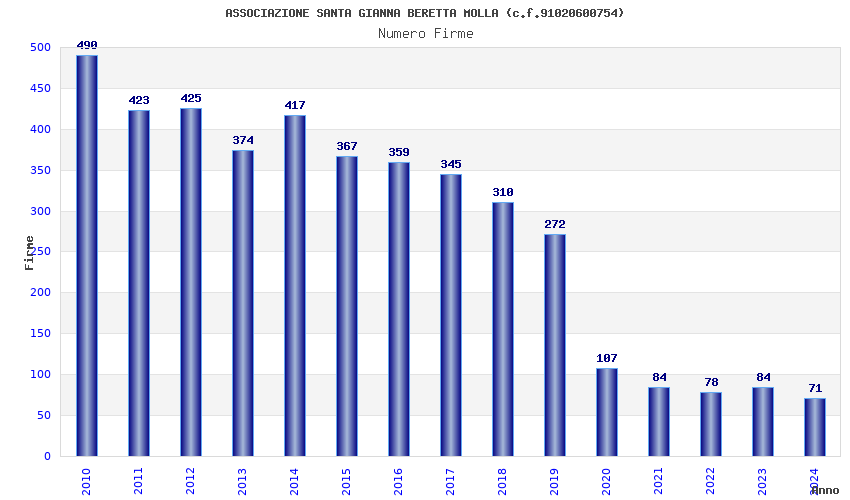 | Anno | Firme | Importi | Media | Naz. | Reg. | Prov. | Comu. |