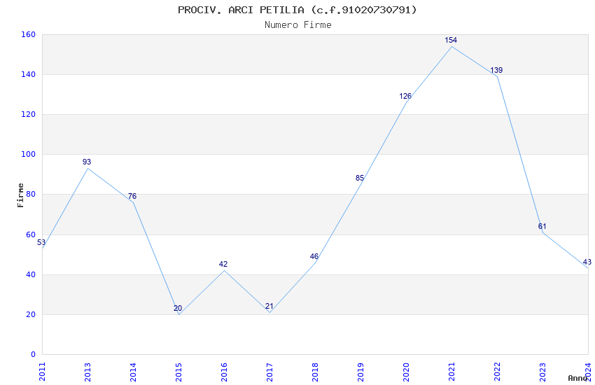 | 2021 | 154 | 2.401,21 | 15,59 | 20.953 | 465 | 38 | 4 |