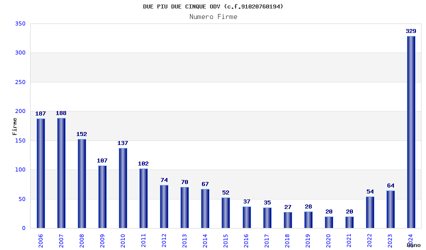 | Anno | Firme | Importi | Media | Naz. | Reg. | Prov. | Comu. |