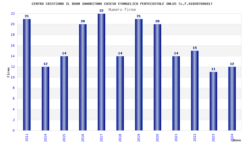 | Anno | Firme | Importi | Media | Naz. | Reg. | Prov. | Comu. |