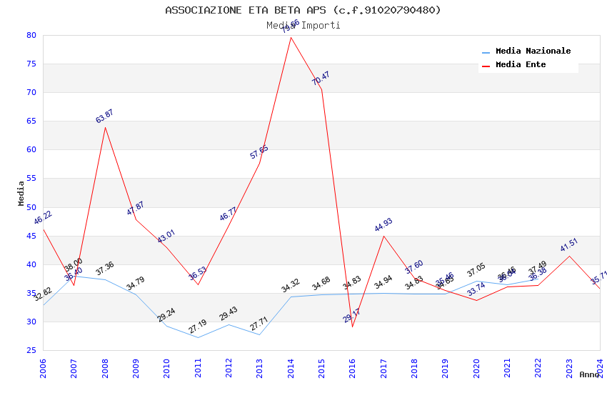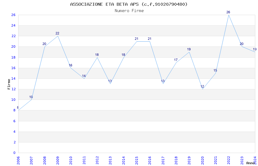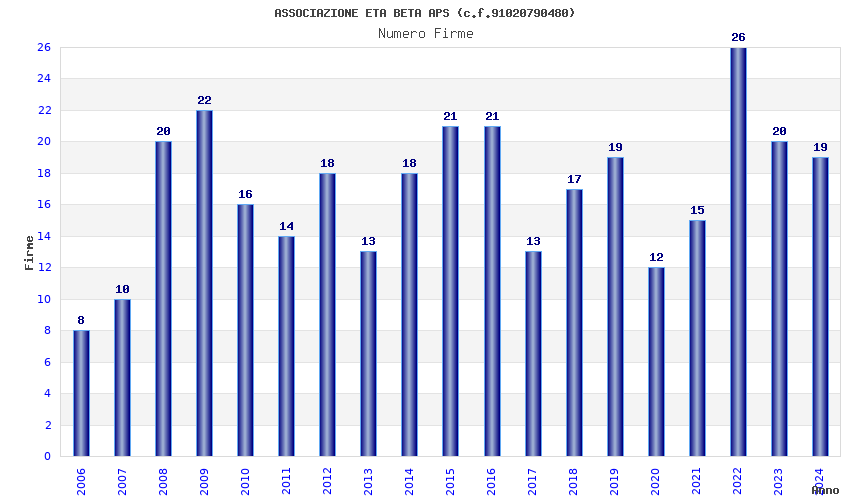 | Anno | Firme | Importi | Media | Naz. | Reg. | Prov. | Comu. |