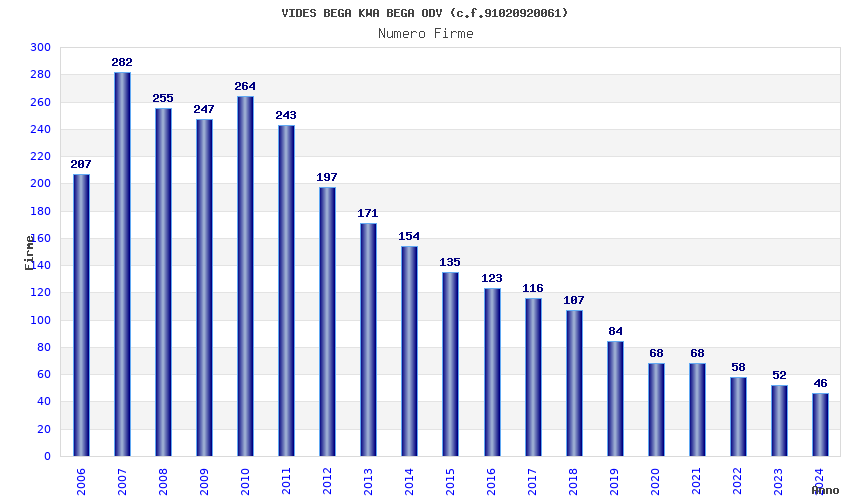 | Anno | Firme | Importi | Media | Naz. | Reg. | Prov. | Comu. |