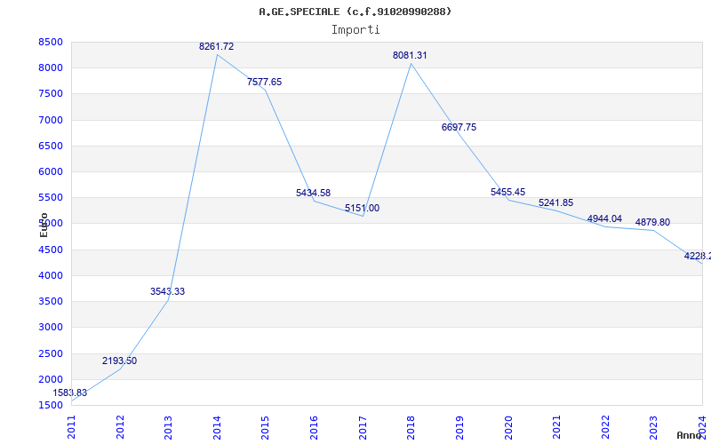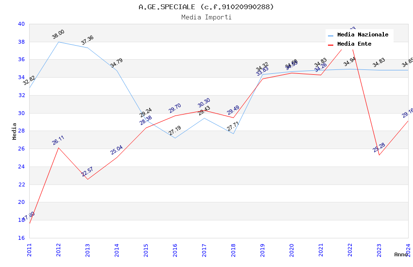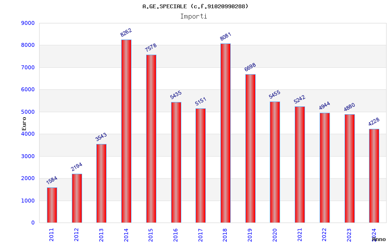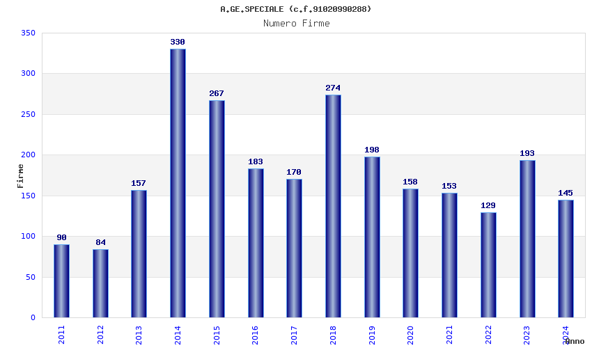 | Anno | Firme | Importi | Media | Naz. | Reg. | Prov. | Comu. |