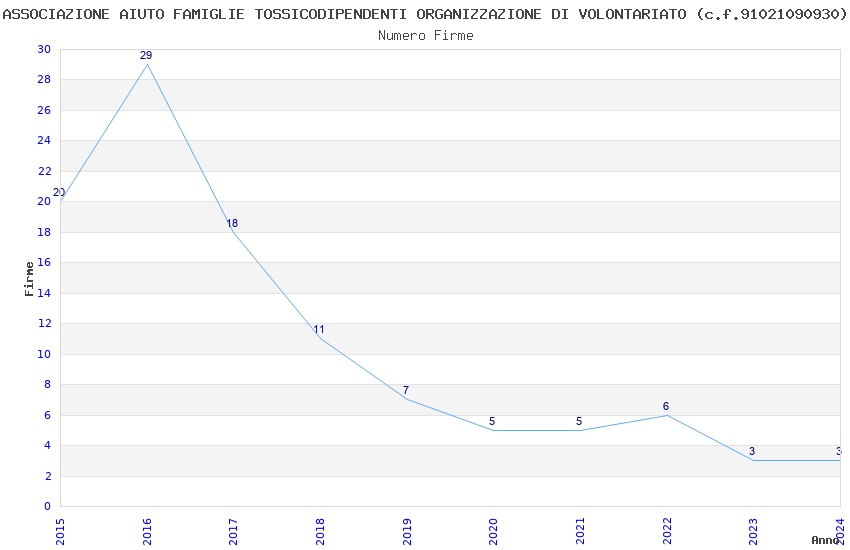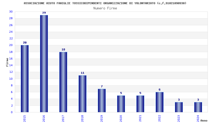 | Anno | Firme | Importi | Media | Naz. | Reg. | Prov. | Comu. |