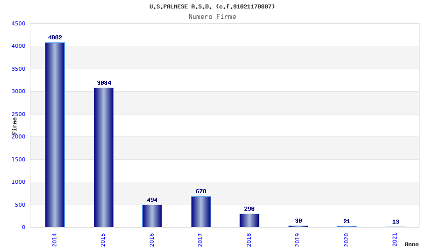 | Anno | Firme | Importi | Media | Naz. | Reg. | Prov. | Comu. |