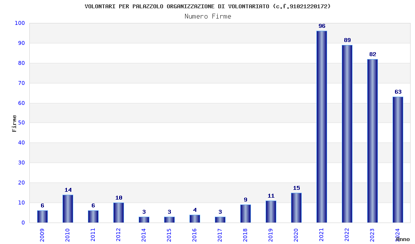 | Anno | Firme | Importi | Media | Naz. | Reg. | Prov. | Comu. |