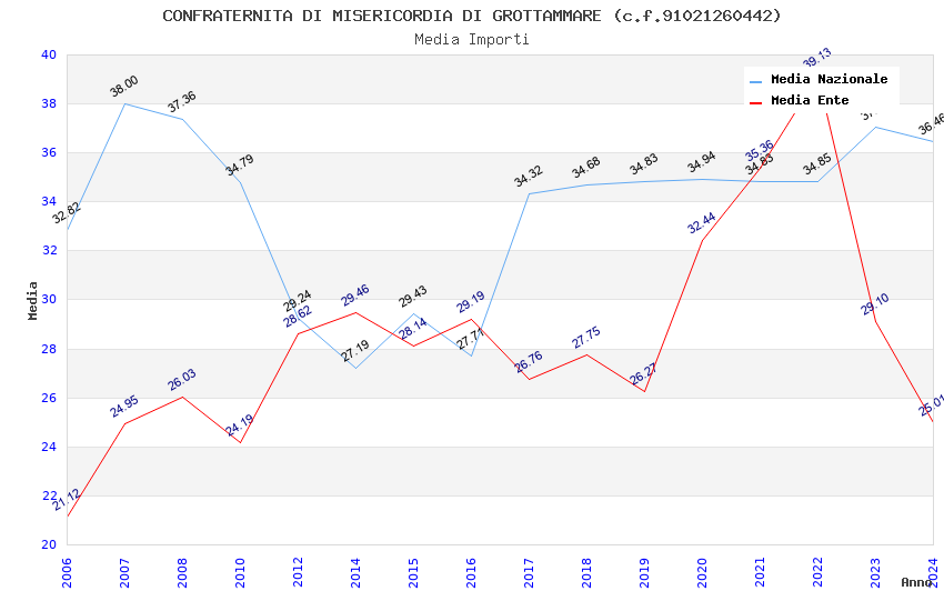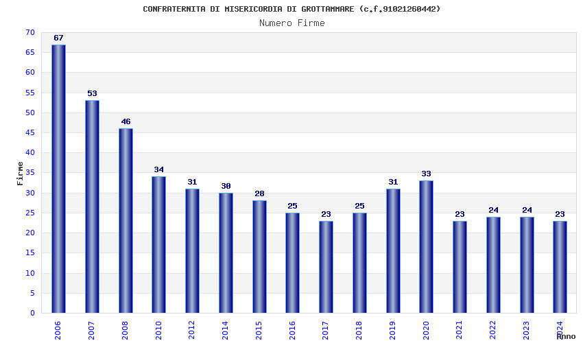 | Anno | Firme | Importi | Media | Naz. | Reg. | Prov. | Comu. |