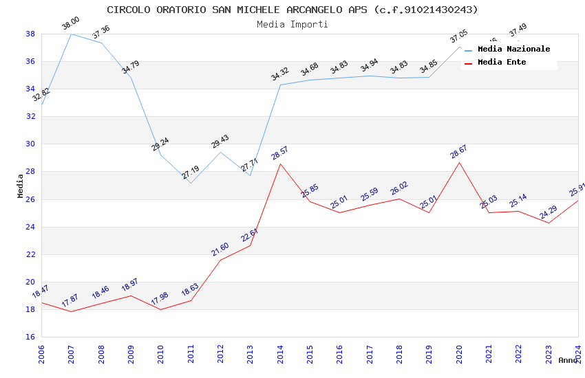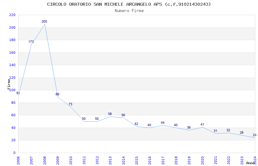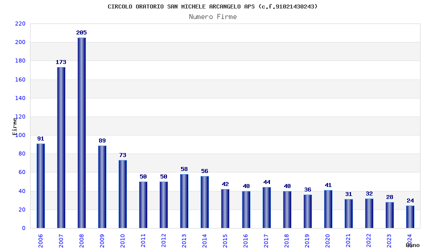 | Anno | Firme | Importi | Media | Naz. | Reg. | Prov. | Comu. |