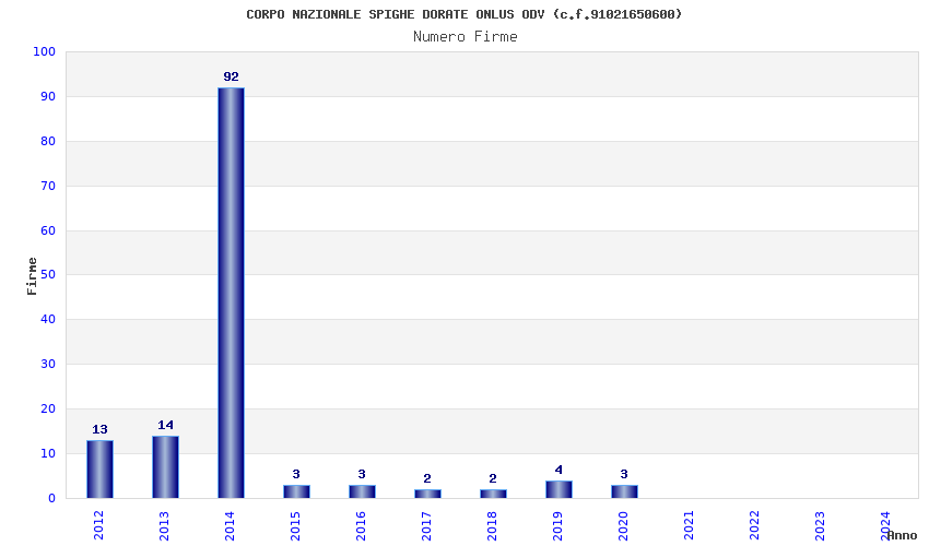 | Anno | Firme | Importi | Media | Naz. | Reg. | Prov. | Comu. |
