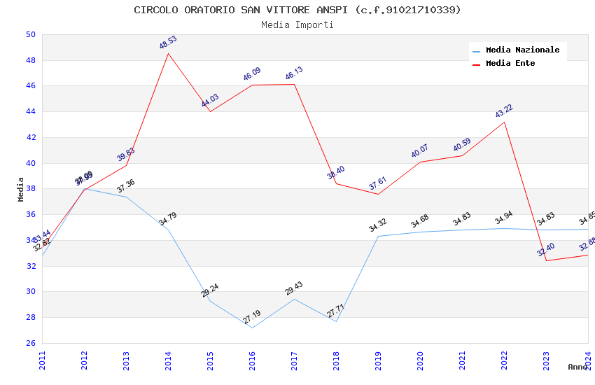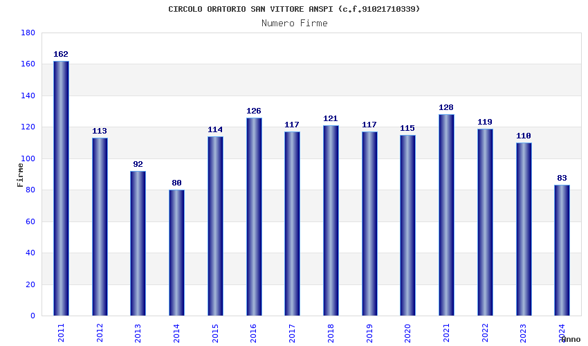 | Anno | Firme | Importi | Media | Naz. | Reg. | Prov. | Comu. |