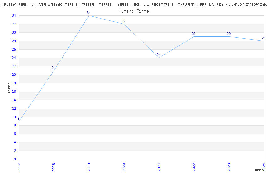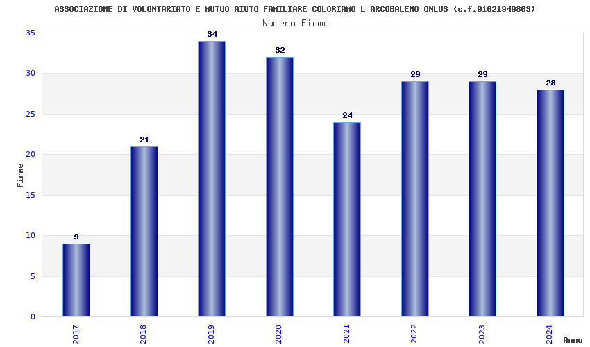 | Anno | Firme | Importi | Media | Naz. | Reg. | Prov. | Comu. |