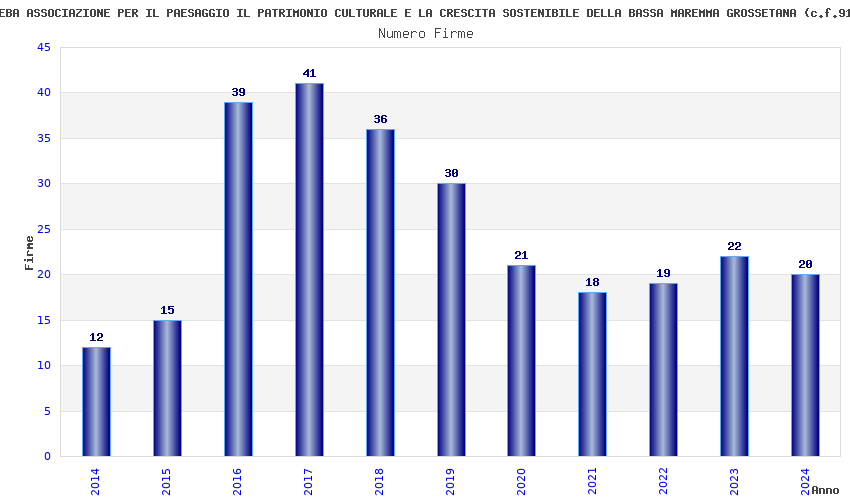 | Anno | Firme | Importi | Media | Naz. | Reg. | Prov. | Comu. |