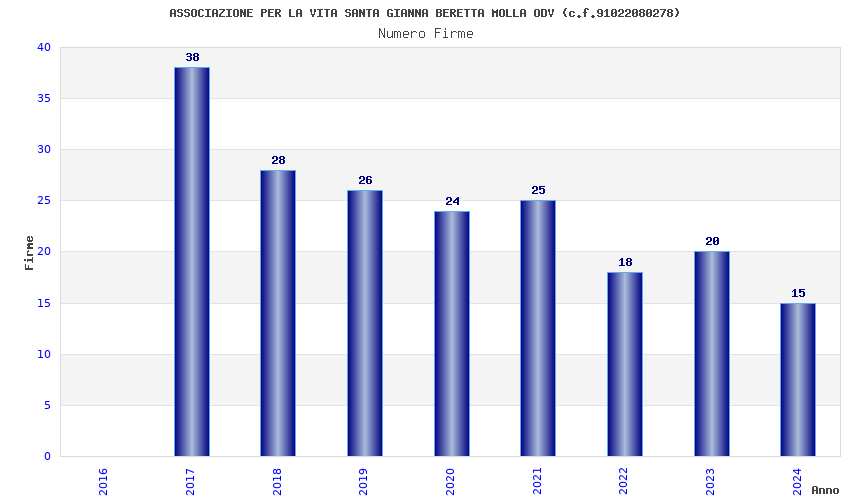 | Anno | Firme | Importi | Media | Naz. | Reg. | Prov. | Comu. |