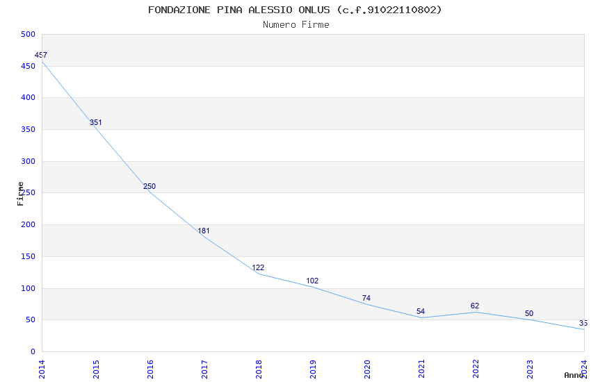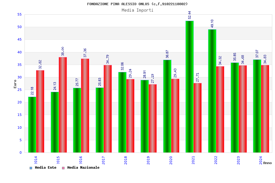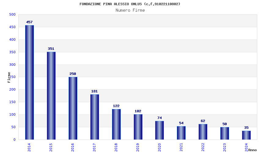 | Anno | Firme | Importi | Media | Naz. | Reg. | Prov. | Comu. |
