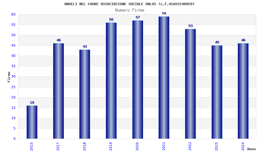 | Anno | Firme | Importi | Media | Naz. | Reg. | Prov. | Comu. |