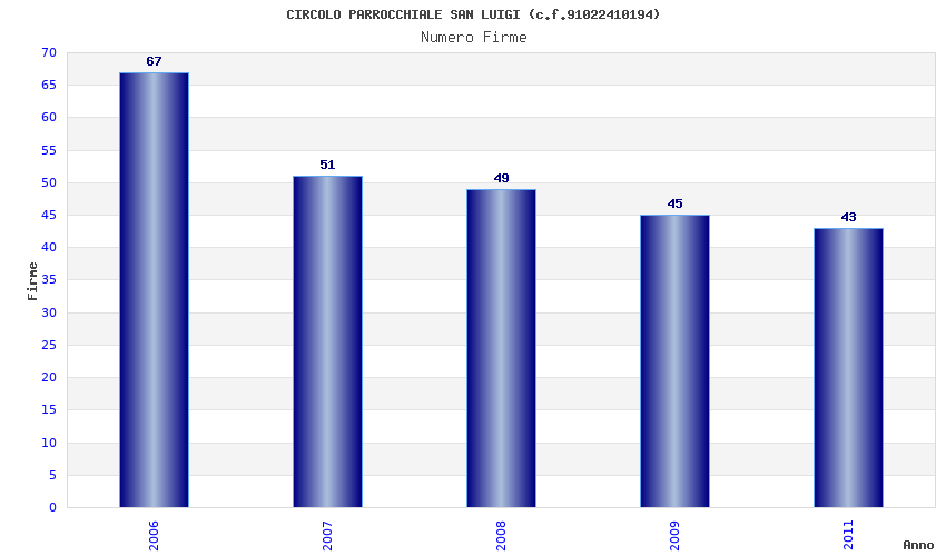 | Anno | Firme | Importi | Media | Naz. | Reg. | Prov. | Comu. |