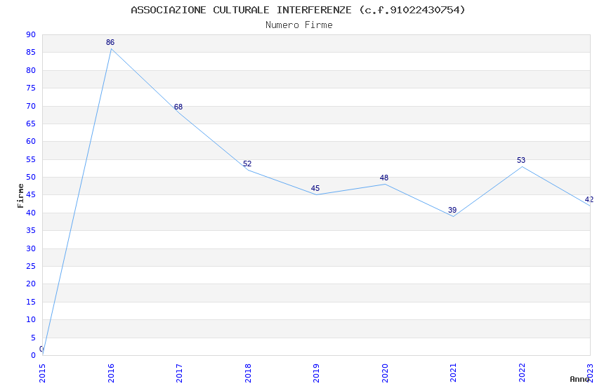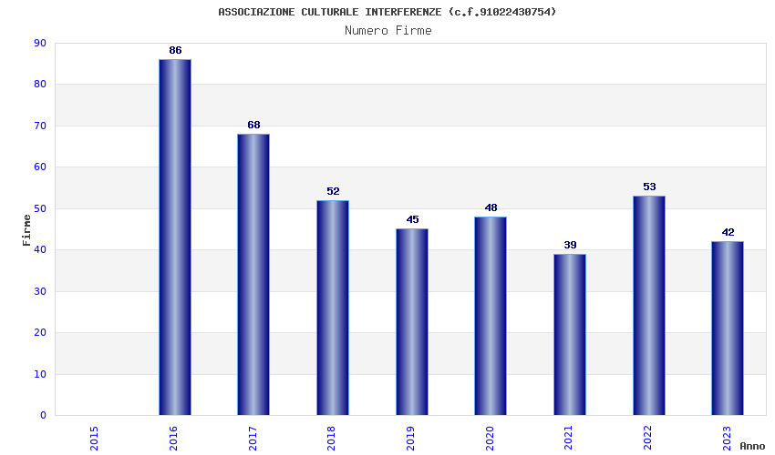 | Anno | Firme | Importi | Media | Naz. | Reg. | Prov. | Comu. |