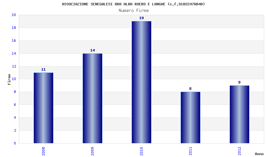 | Anno | Firme | Importi | Media | Naz. | Reg. | Prov. | Comu. |