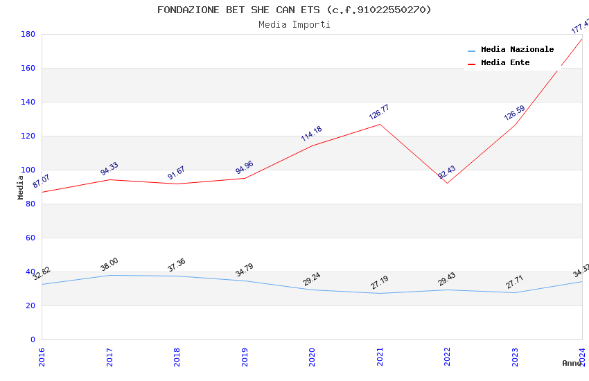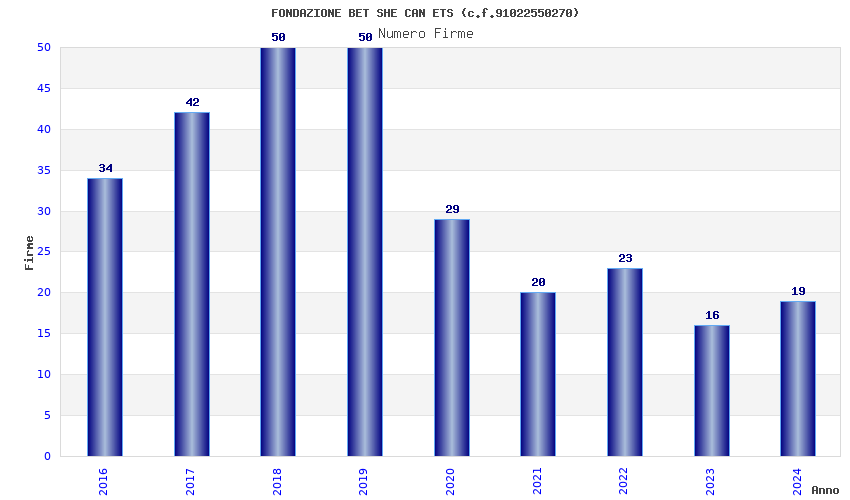 | Anno | Firme | Importi | Media | Naz. | Reg. | Prov. | Comu. |
