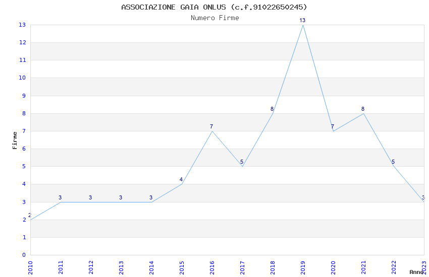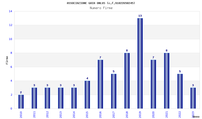 | Anno | Firme | Importi | Media | Naz. | Reg. | Prov. | Comu. |