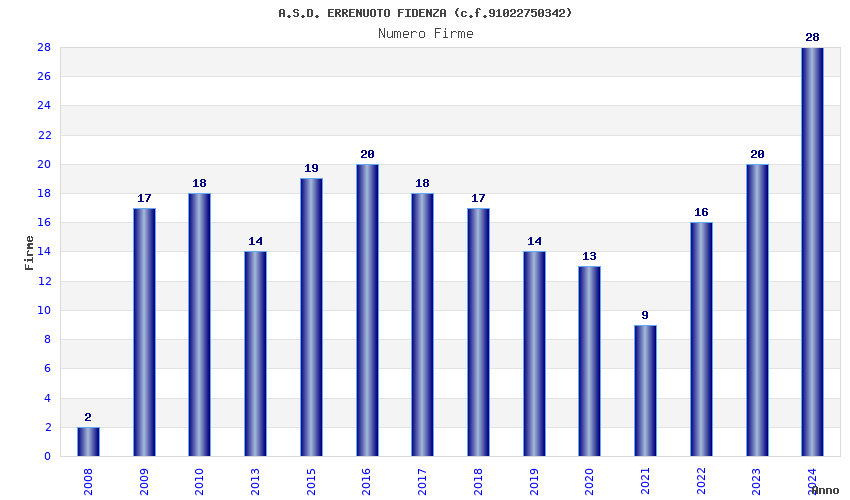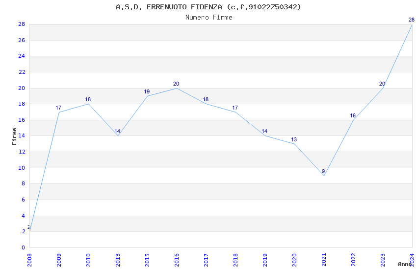 | 2020 | 13 | 1.714,31 | 131,87 | 26.945 | 2.398 | 302 | 18 |