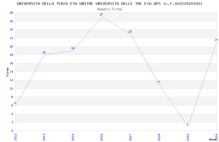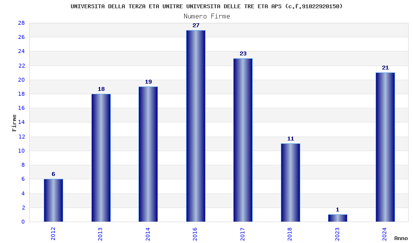 | Anno | Firme | Importi | Media | Naz. | Reg. | Prov. | Comu. |