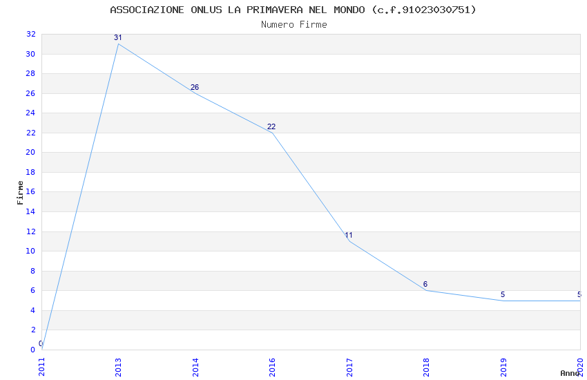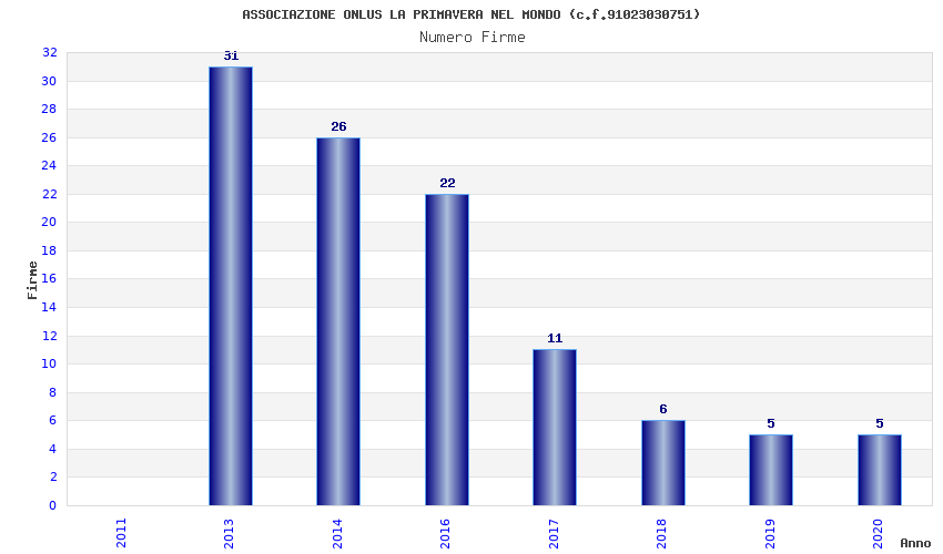 | Anno | Firme | Importi | Media | Naz. | Reg. | Prov. | Comu. |