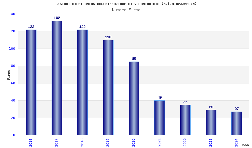 | Anno | Firme | Importi | Media | Naz. | Reg. | Prov. | Comu. |