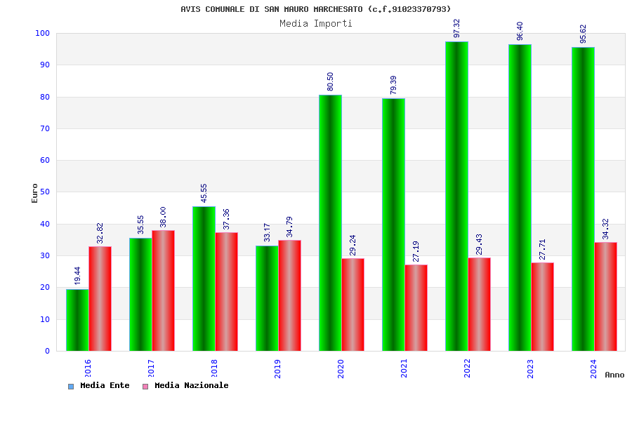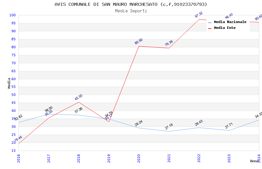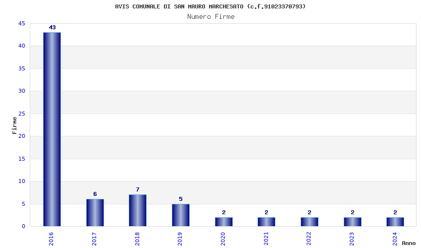 | Anno | Firme | Importi | Media | Naz. | Reg. | Prov. | Comu. |