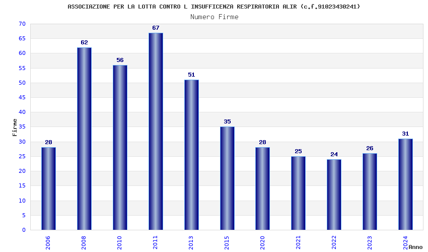 | Anno | Firme | Importi | Media | Naz. | Reg. | Prov. | Comu. |