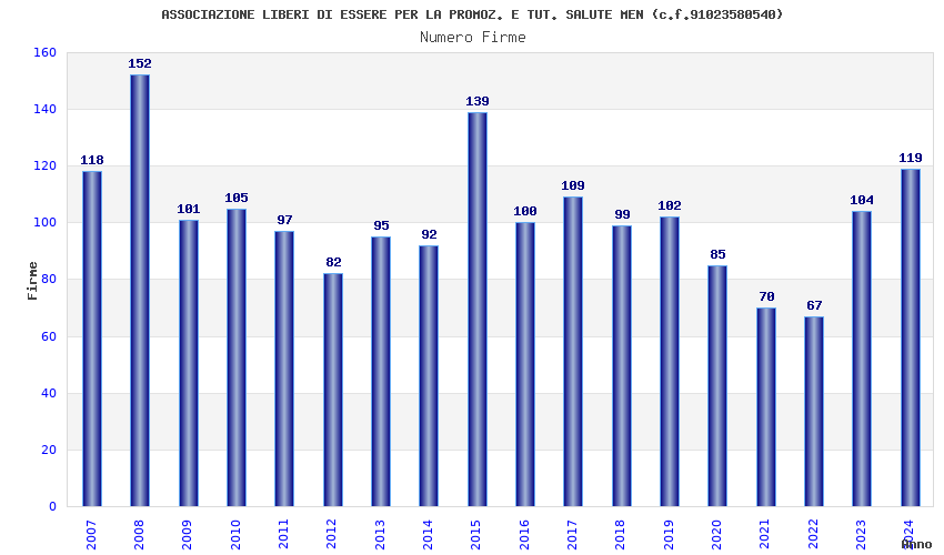 | 2024 | 119 | 4.084,19 | 34,32 | 13.143 | 184 | 146 | 11 |