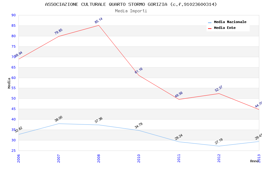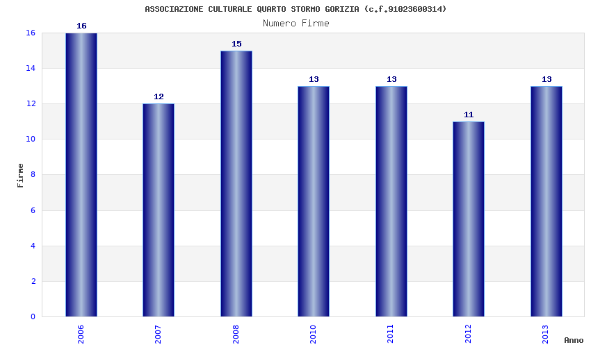 | Anno | Firme | Importi | Media | Naz. | Reg. | Prov. | Comu. |