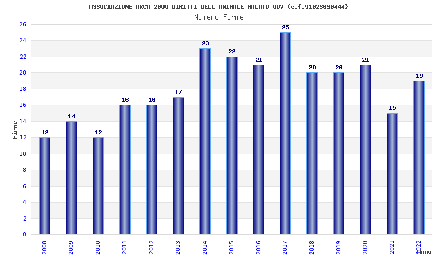 | Anno | Firme | Importi | Media | Naz. | Reg. | Prov. | Comu. |