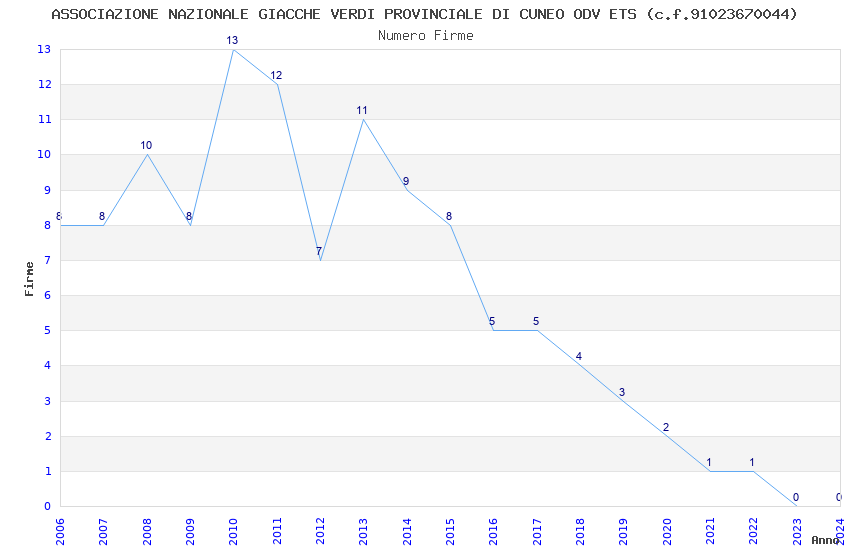 | Anno | Firme | Importi | Media | Naz. | Reg. | Prov. | Comu. |