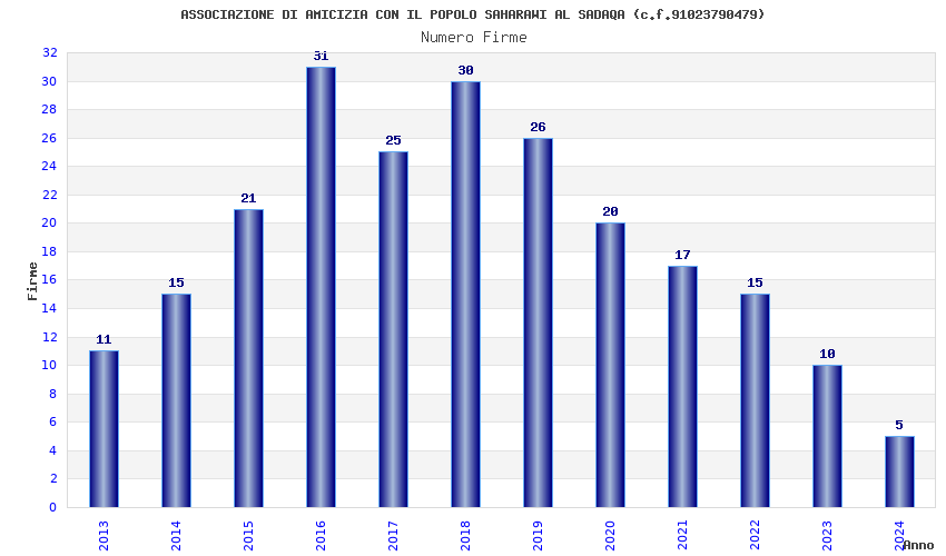 | Anno | Firme | Importi | Media | Naz. | Reg. | Prov. | Comu. |