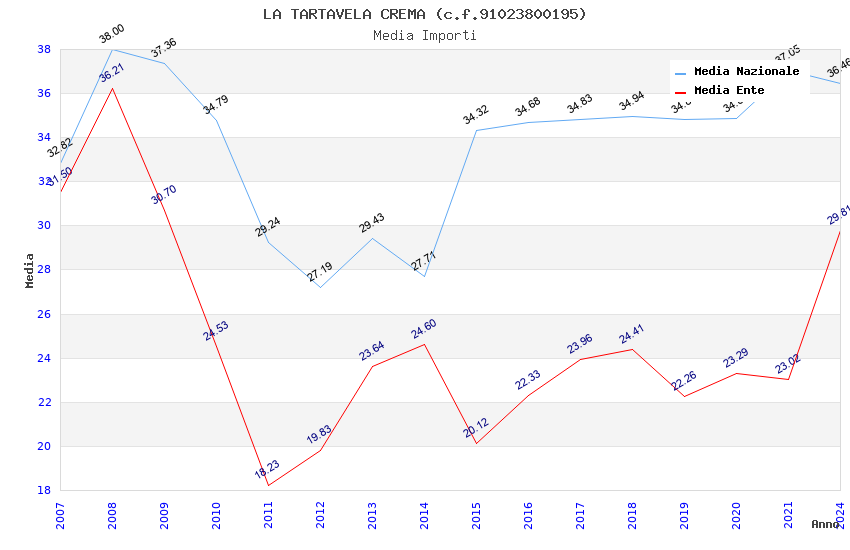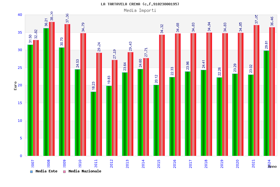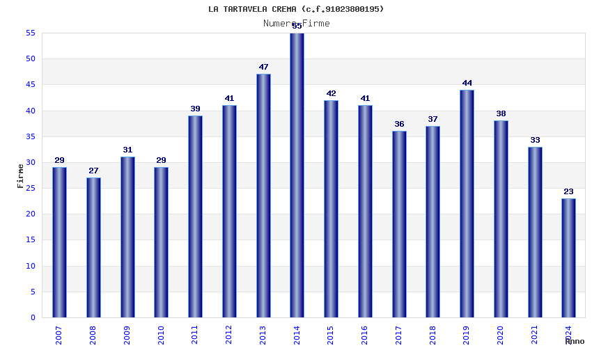 | Anno | Firme | Importi | Media | Naz. | Reg. | Prov. | Comu. |