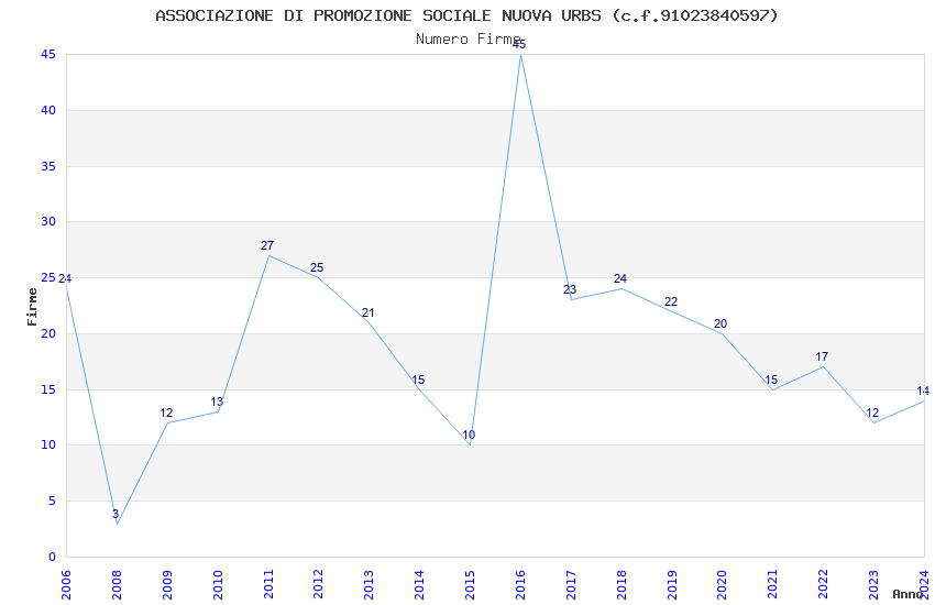 | 2016 | 45 | 1.110,24 | 24,67 | 31.414 | 2.805 | 164 | 73 |